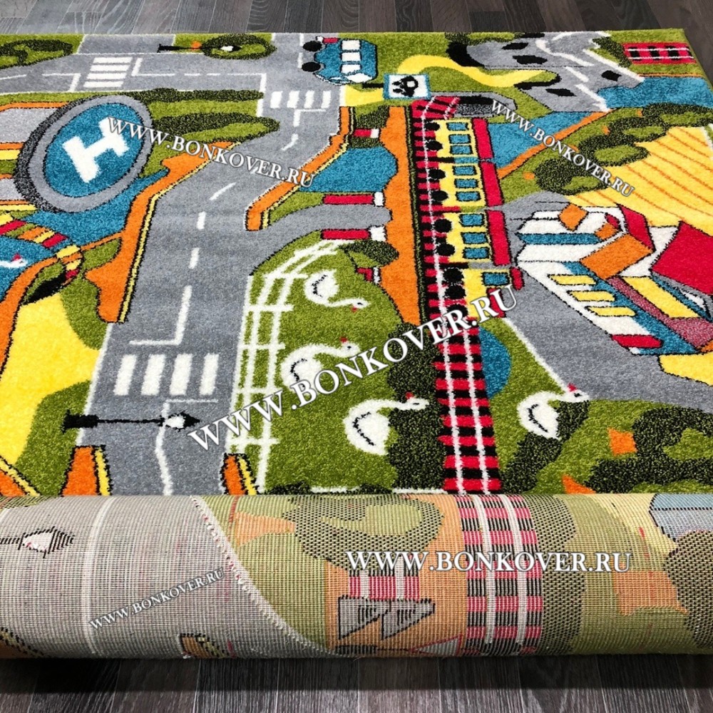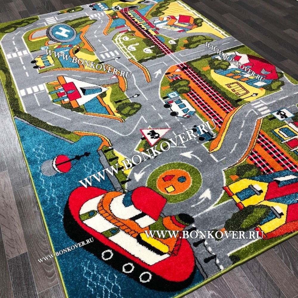 Детский Ковер Город 01 Разноцветный не деформируется, сохраняет свою форму. Ворс быстро восстанавливается, что не оставляет на поверхности изделия неприглядных отметин.
