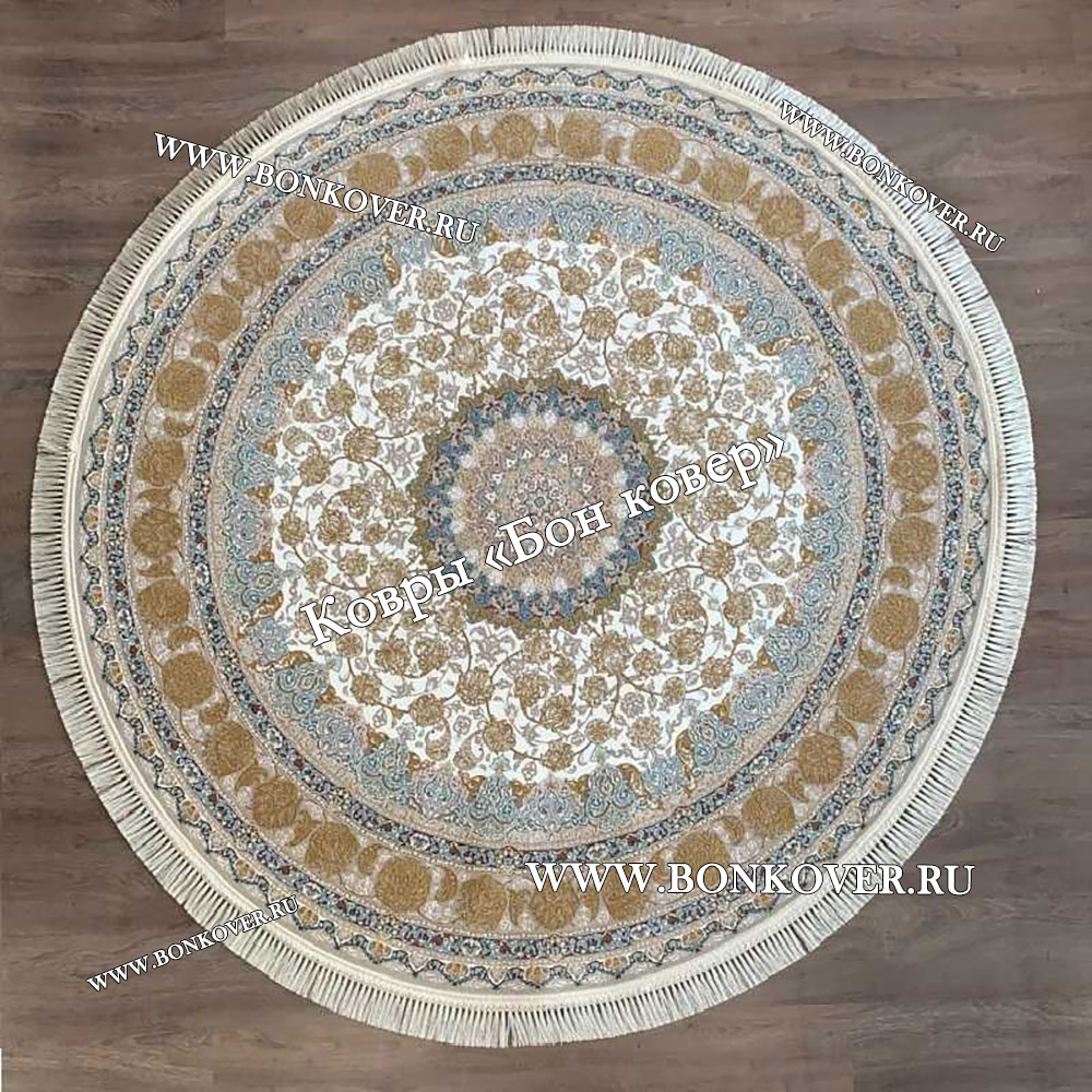 Красивый Иранский Круглый Ковер Для Гостиной Арт 30259 наполняет интерьер вашего дома теплом и уютом, гармонично сочетает в себе изящество и стиль. Он выполнен из износостойких материалов, прочный и долговечный.