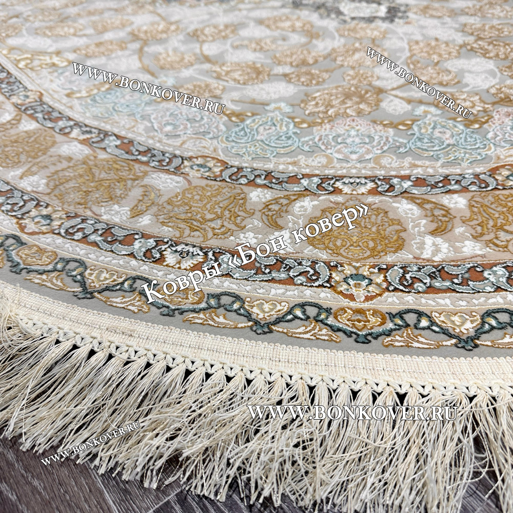 Иранский Круглый Ковер Для Гостиной Арт 30259 станет превосходным дополнением интерьера, оформленного в современном или классическом стиле. Мягкое, но прочное, ковровое покрытие обеспечивает тепло- и шумоизоляцию, отличается длительным сроком эксплуатации, пожаробезопасностью, экологичностью и высокой износостойкостью, является отличным барьером от повышенной влажности в комнате и утеплителем для холодного пола. Благодаря качеству материалов, ковер не деформируется, сохраняет первоначальный вид под тяжестью предметов мебели. За его поверхностью легко ухаживать.