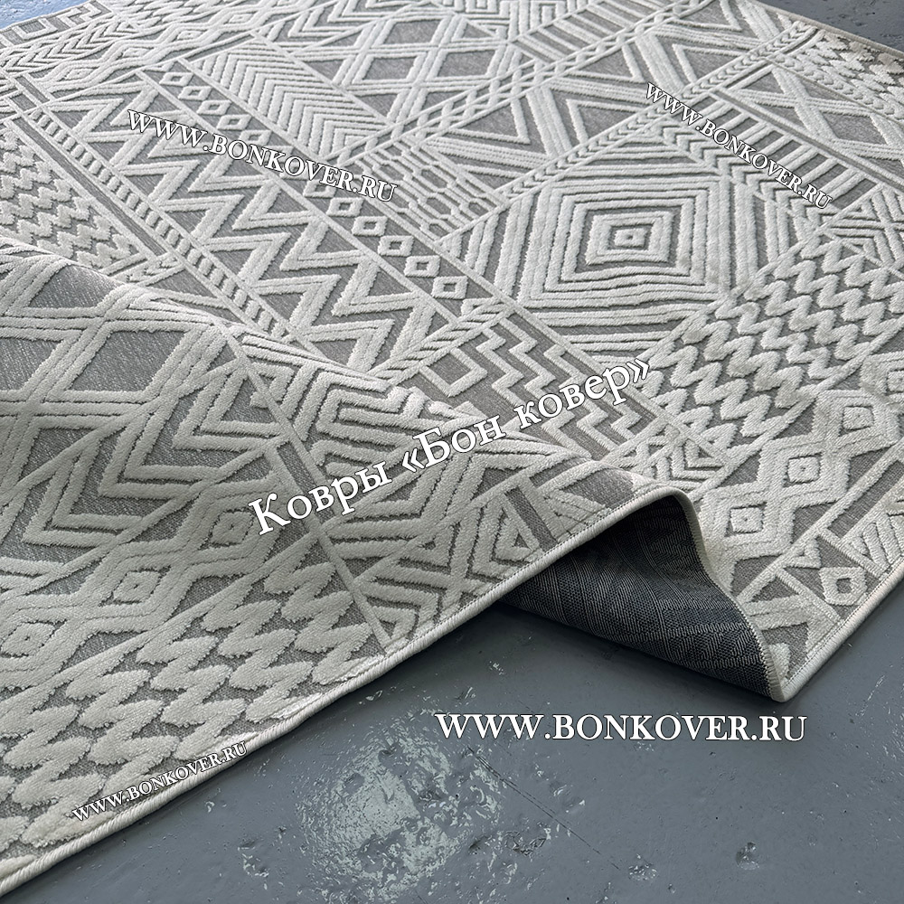 Ковер для гостиной из артшелка дизайн 65 Белый станет превосходным дополнением интерьера, оформленного в современном или классическом стиле. Мягкое, но прочное, ковровое покрытие обеспечивает тепло- и шумоизоляцию, отличается длительным сроком эксплуатации, надежностью, экологичностью и высокой износостойкостью, является отличной защитой от повышенной влажности в помещении и утеплителем для холодного пола. Благодаря качеству материалов, ковер не деформируется, сохраняет форму под тяжестью предметов мебели. За его поверхностью легко ухаживать.
