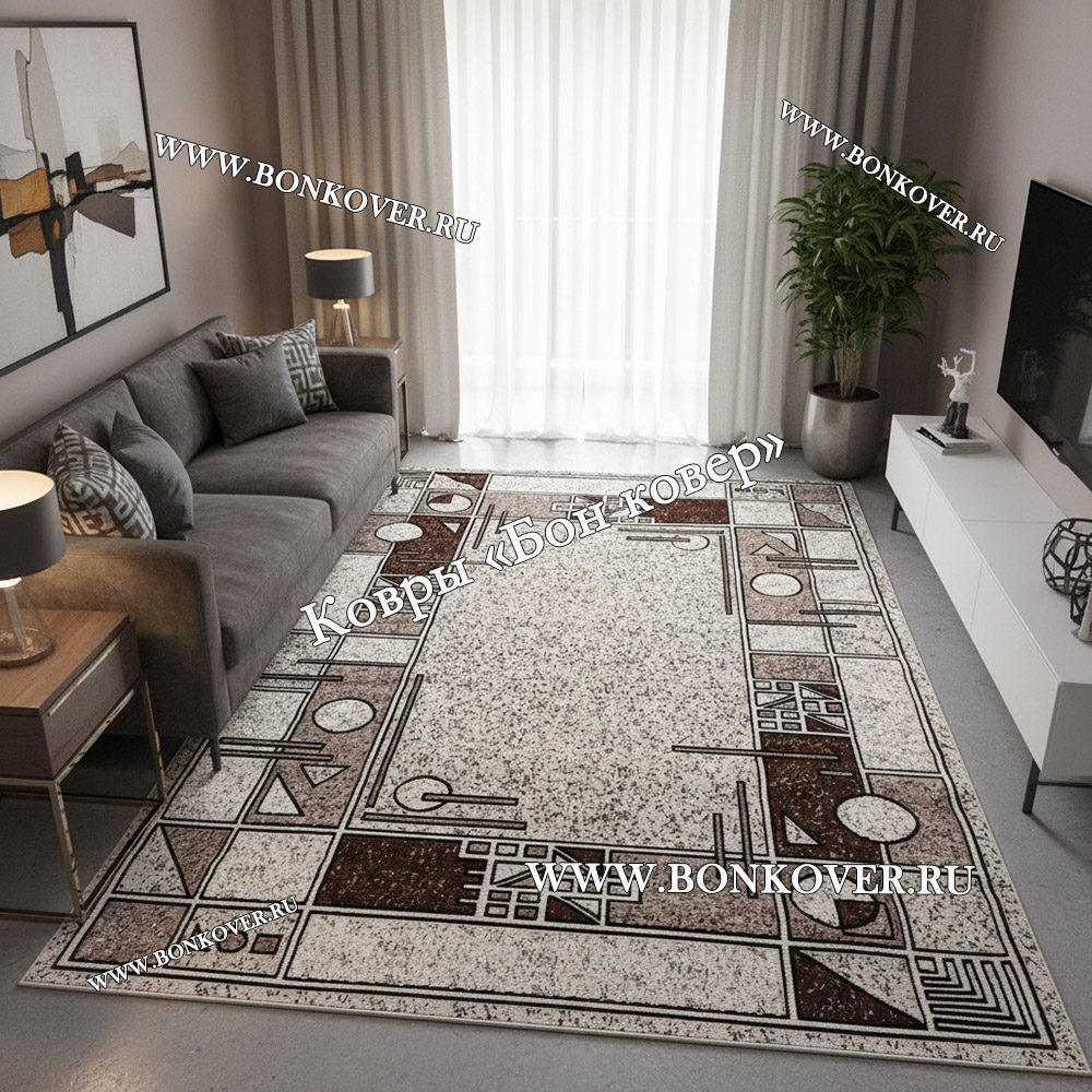 Ковер Лайт Карпет New 4 Дизайн 03 Бежево-Коричневый станет великолепным преображением вашей комнаты, подчеркивая высокий статус владельца.