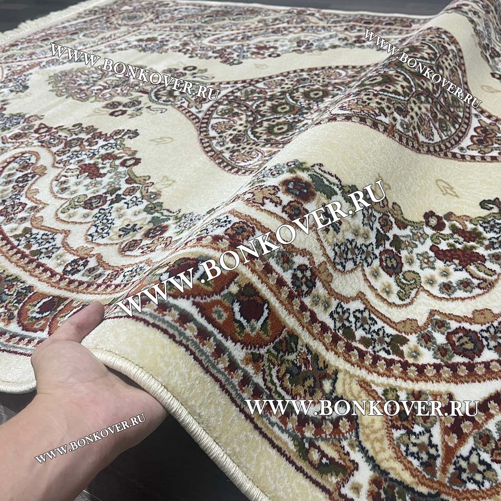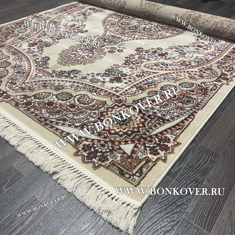 Ковер с восточным орнаментом Дизайн 04 Бежевый Прямоугольный станет шикарным преображением жилого помещения, подчеркивая высокий статус семьи владельца.