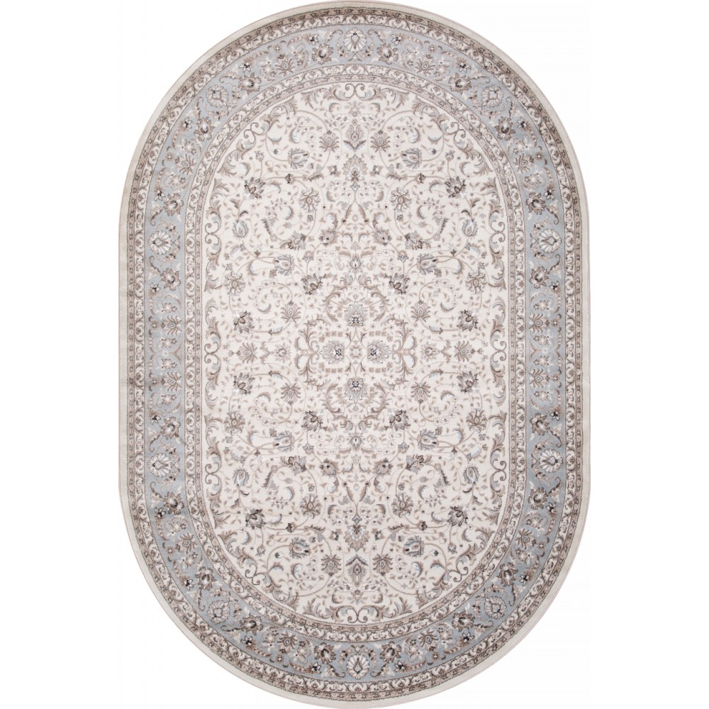 Изящный Ковер Valencia deluxe F014 CREAM-L.BLUE Овал наполняет интерьер вашего дома теплом и уютом, гармонично сочетает в себе изящество и стиль. Он создан из высококачественного сырья, комфортный и долговечный.