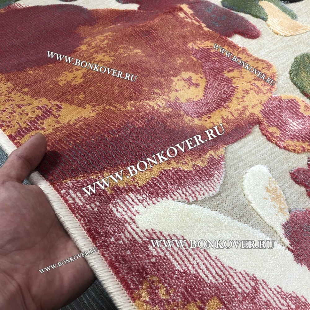 ААнастасия Оценка покупки 5.016 Сентября, 2019Давно искала оригинальный ковер для спаленки. Очень хотелось чтобы он был необычный, поэтому взяла этот с «нарисованными» цветами. Надо сказать, приятно удивило качество плетения, нитки нигде не торчат, ворс ровный, мягкий и в то же время прекрасно держит форму, не продавливается и не зализывается даже под ножками стула. Приятная цена и отличное исполнение.