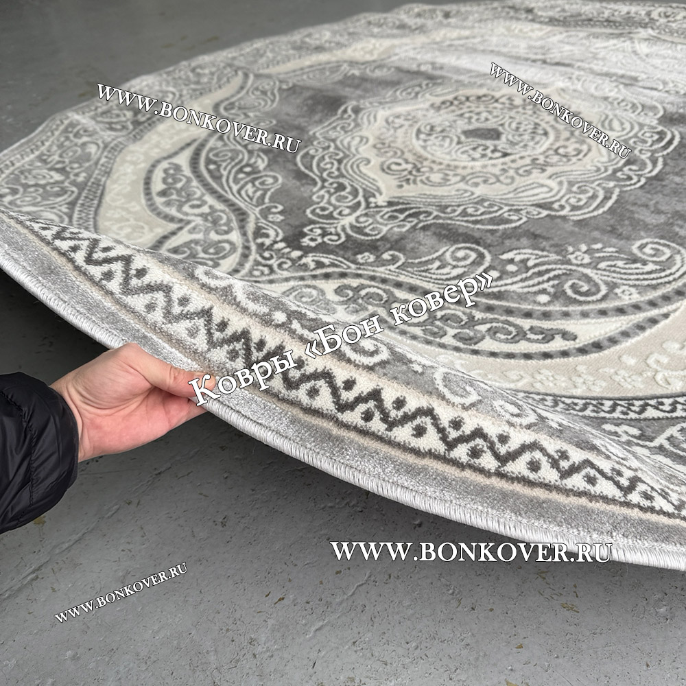 Шикарный Круглый ковер в гостиную дизайн 01 Серый наполняет интерьер квартиры теплом и уютом, гармонично сочетает в себе изящество и красоту. Он изготовлен из износостойких материалов, комфортный и долговечный.