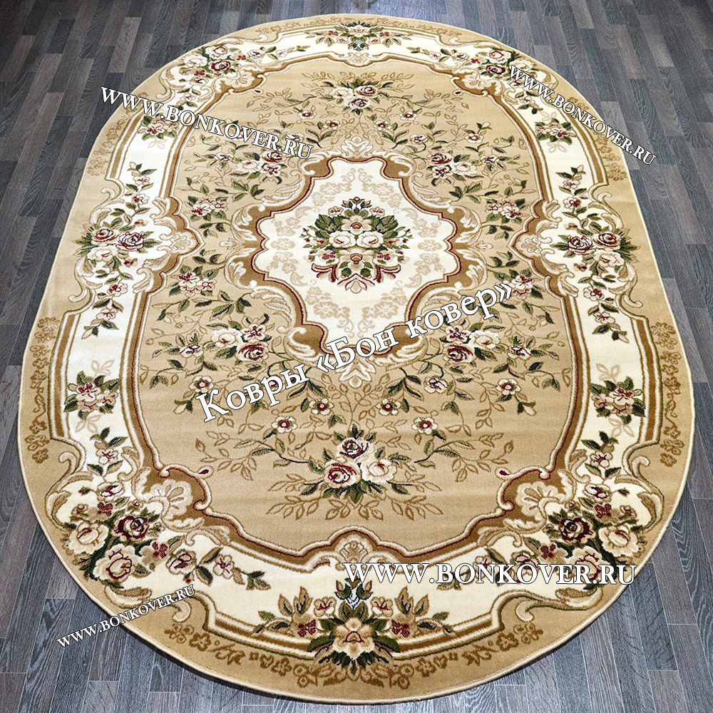 Шикарный РОССИЙСКИЙ ЖАККАРДОВЫЙ КОВЕР МЕДАЛЬОН БЕЖЕВЫЙ ОВАЛЬНЫЙ наполняет интерьер квартиры теплом и уютом, гармонично сочетает в себе изящество и красоту. Он создан из износостойких материалов, прочный и долговечный.