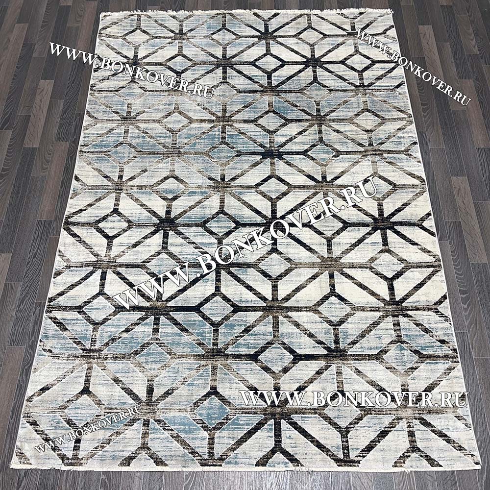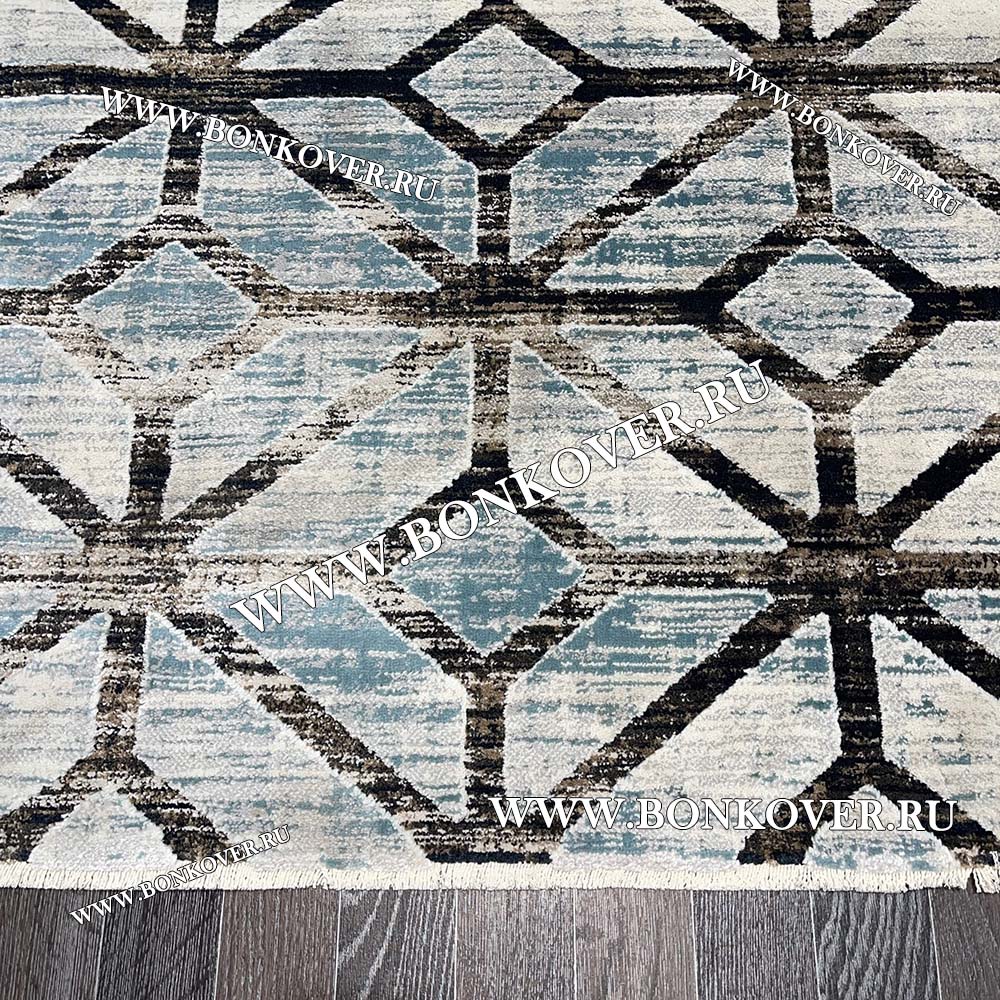 Современный Турецкий Ковер Дизайн 134 Геометрический Серый с Синим станет идеальным преображением жилого помещения, подчеркивая высокий статус семьи владельца.