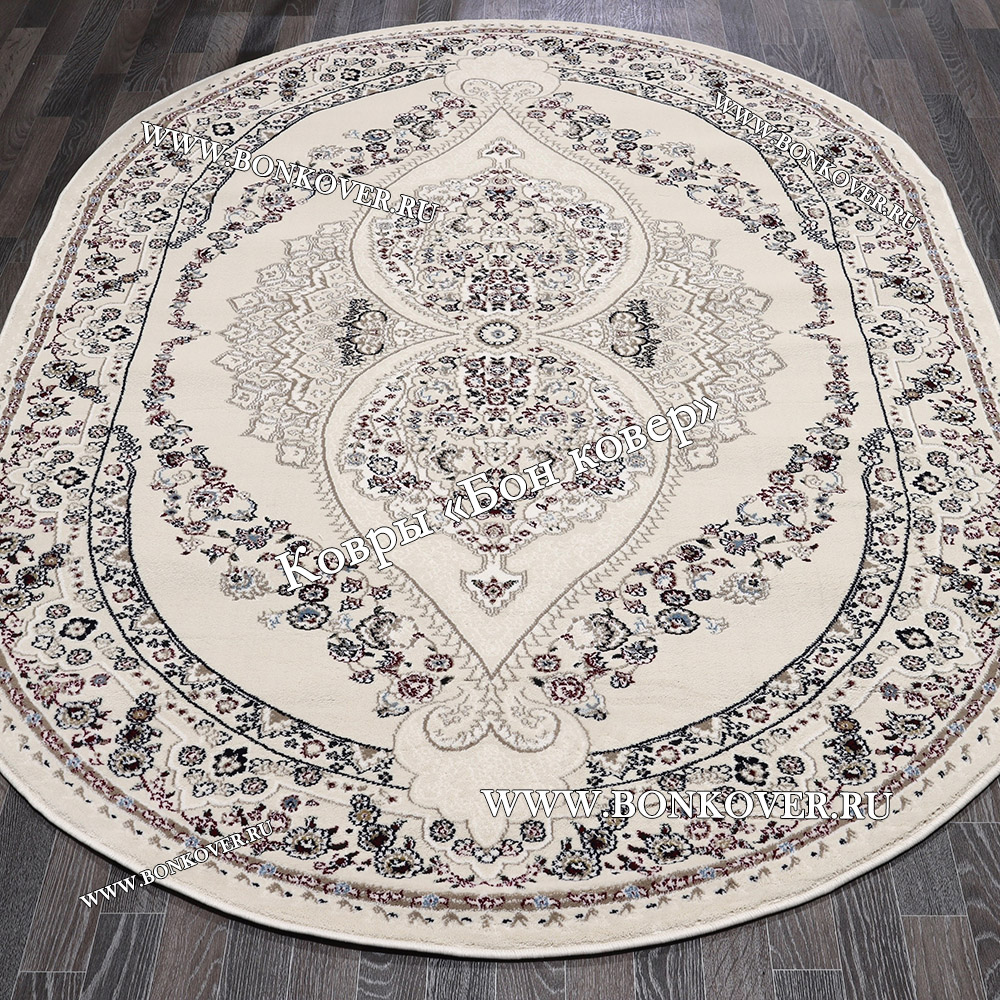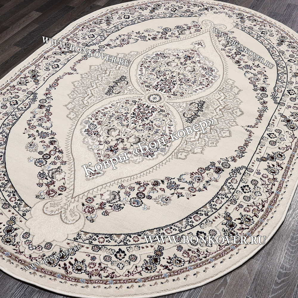 Турецкий Ковер Для гостиной дизайн 91 Овал станет превосходным дополнением интерьера, оформленного в современном или классическом стиле. Мягкое, но прочное, ковровое изделие обеспечивает тепло- и шумоизоляцию, отличается длительным периодом эксплуатации, надежностью, экологичностью и высокой износостойкостью, является отличной преградой от повышенной влажности в комнате и утеплителем для холодного пола. Благодаря качеству материалов, ковер не деформируется, сохраняет первоначальный вид под тяжестью предметов мебели. За его поверхностью легко ухаживать.